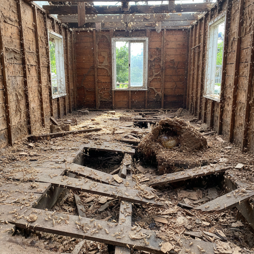 - โครงสร้างหลังคาและคาน: หากเป็นไม้ ปลวกจะกัดกินจนกลวง เสี่ยงต่อการพังทลาย