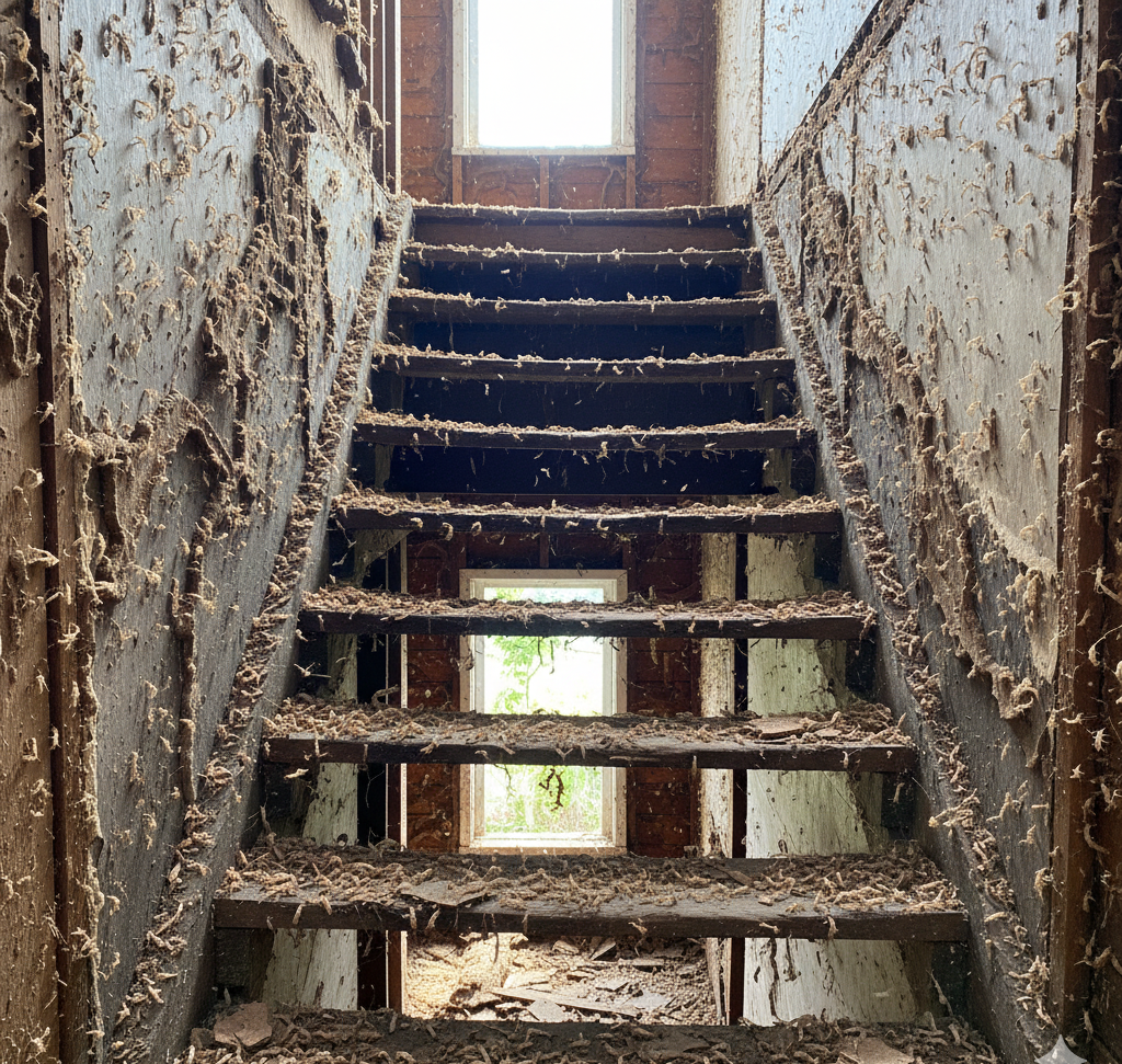 ปัญหาใหญ่ของปลวกคือ “เรามักจะรู้ตัวเมื่อสายไปแล้ว” ปลวกสายพันธุ์ที่พบบ่อยในไทยมักเป็นปลวกใต้ดินที่สร้างทางเดินซ่อนตัวอยู่ตามโครงสร้างไม้ วงกบประตู หรือแม้แต่หลังฝ้าเพดาน